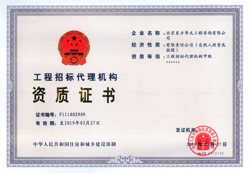 工程招標(biāo)代理甲級資質(zhì)