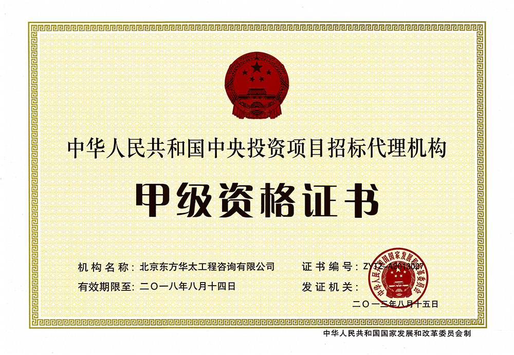 中央投資項(xiàng)目招標(biāo)代理甲級資格