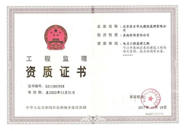 電力工程監(jiān)理乙級資質(zhì)證書