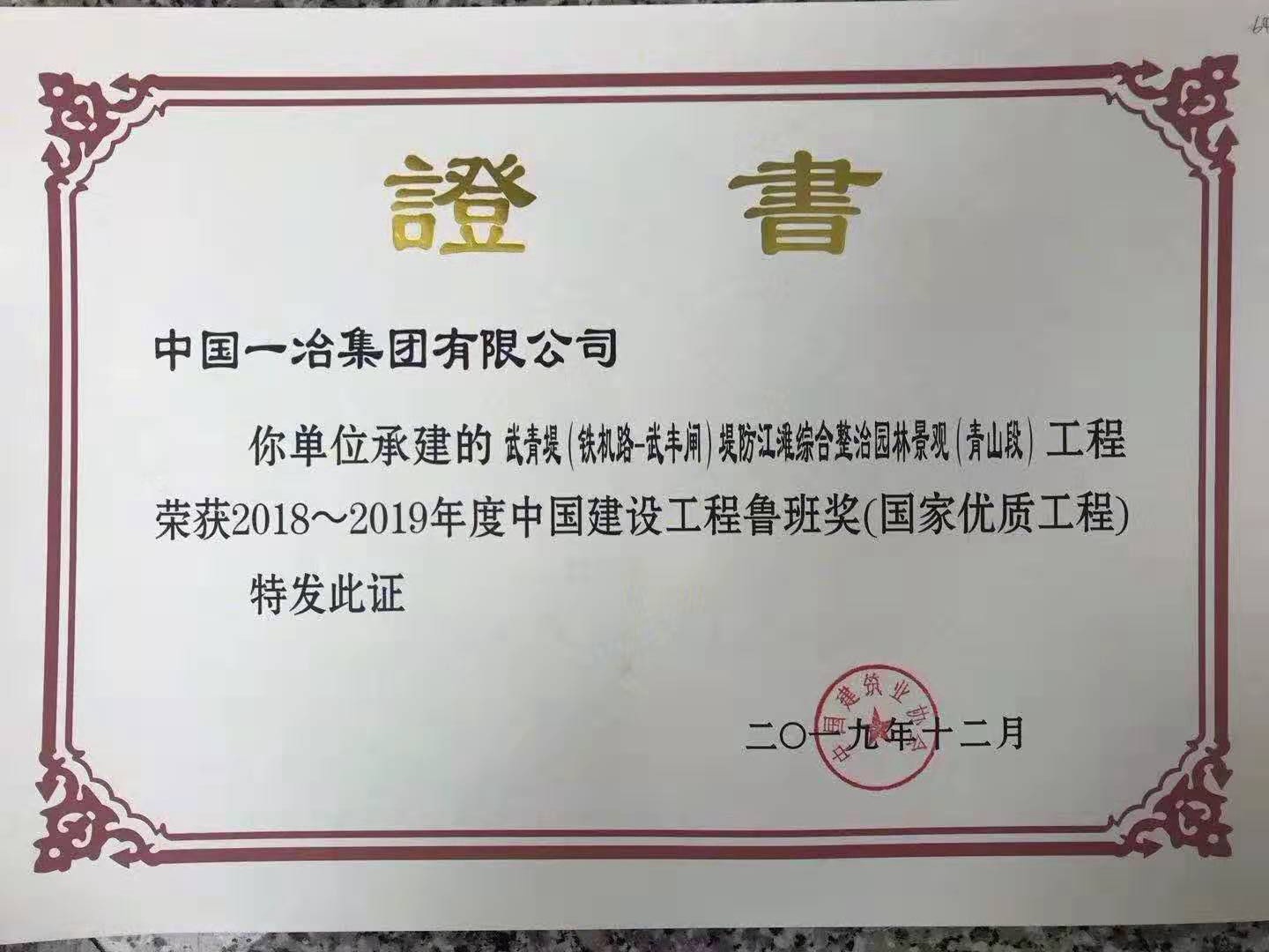武青堤(青山段)工程獲魯班獎(國家優質工程)