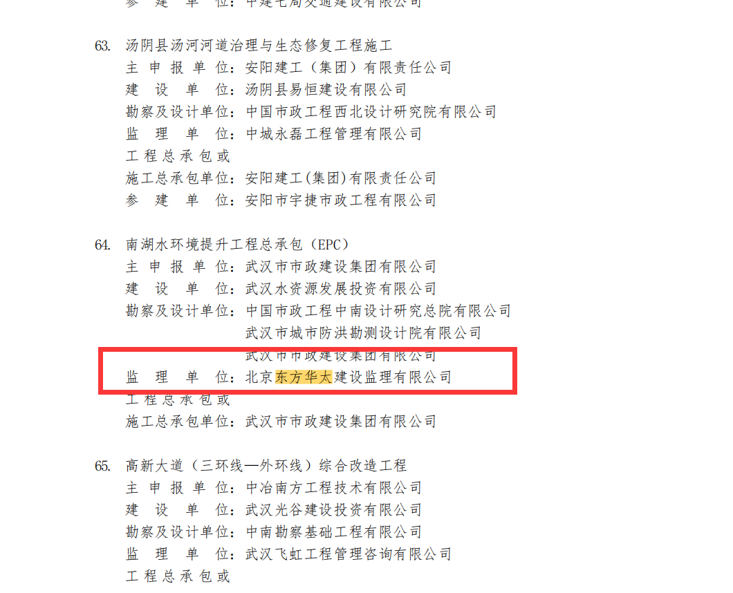 近日,中國市政工程協(xié)會公布“2024年度通過市政工程最高質(zhì)量水平評價(jià)工程名單”,其中東方華太公司承監(jiān)的南湖水環(huán)境提升工程總承包(EPC)、武昌生態(tài)文化長廊工程(友誼大道-建設(shè)十路)PPP 項(xiàng)目榮獲“2024年度市政工程最高質(zhì)量水平評價(jià)”。